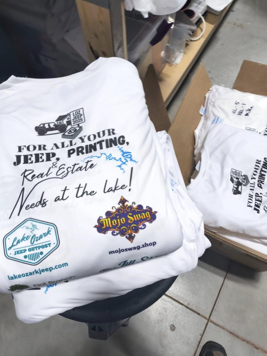 By partnering with Mojo Swag, you gain a dependable digital printing company in Osage Beach, MO, with decades of experience and a commitment to exceptional service. Every shirt is checked for color, clarity, and quality before delivery. Let us turn your vision into wearable art that stands out in comfort, color, and creativity. Contact us now to discuss your custom shirt printing project and get started today.